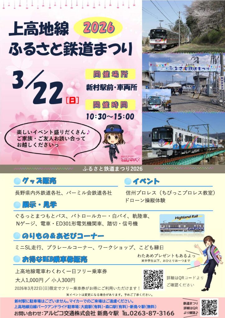 2026年3月22日(日)、アルピコ交通 新村車両所にて開催される